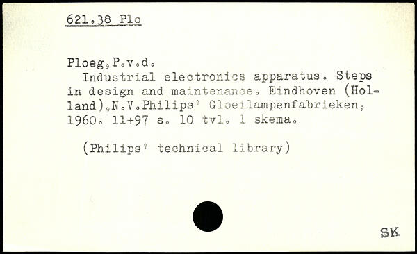Industrial electronics apparatus. Steps in design and maintenance. Eindhoven (Hoi-land)fJN0VoPhilips5 Gloeilampenfabrieken. 1960.