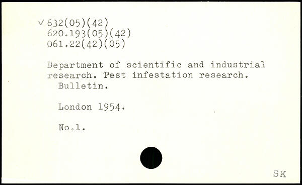 Department of scientific and industrial research. Pest infestation research. Bulletin.