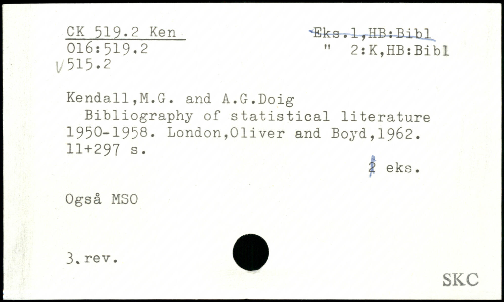 Forfatter: M.G. Kendall, A.G. Doig