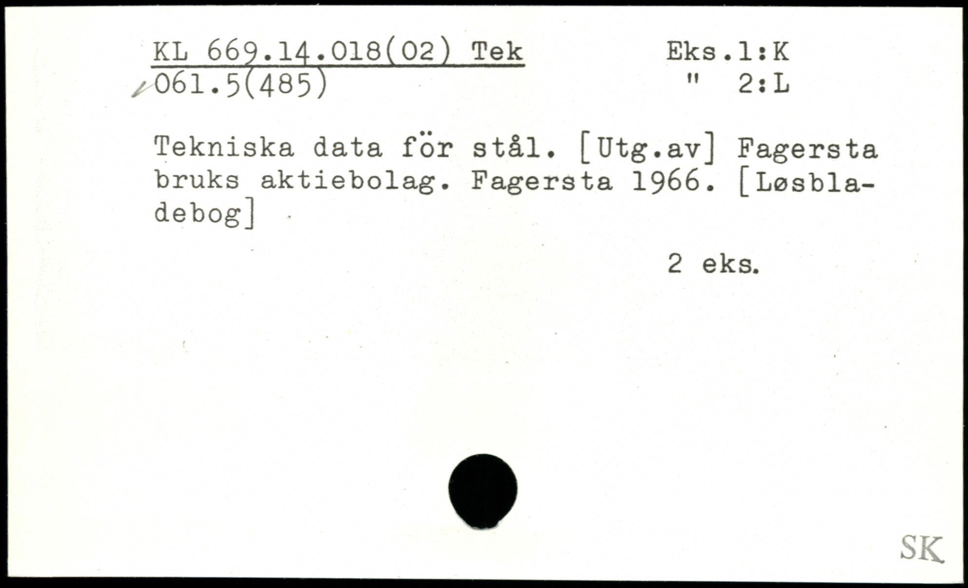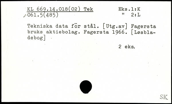 Tekniska data för stål. [Utg.av] Pagersta bruks aktiebolag. Fagersta 1966. [Losbla-debog].