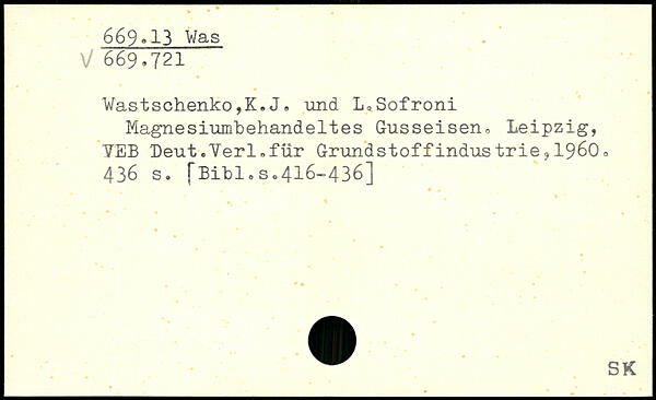 Magnesiumbehandeltes Gusseisen,, Leipzig, YEB Deut.Yerl.fur Grundstoffindus trie, 1960.
