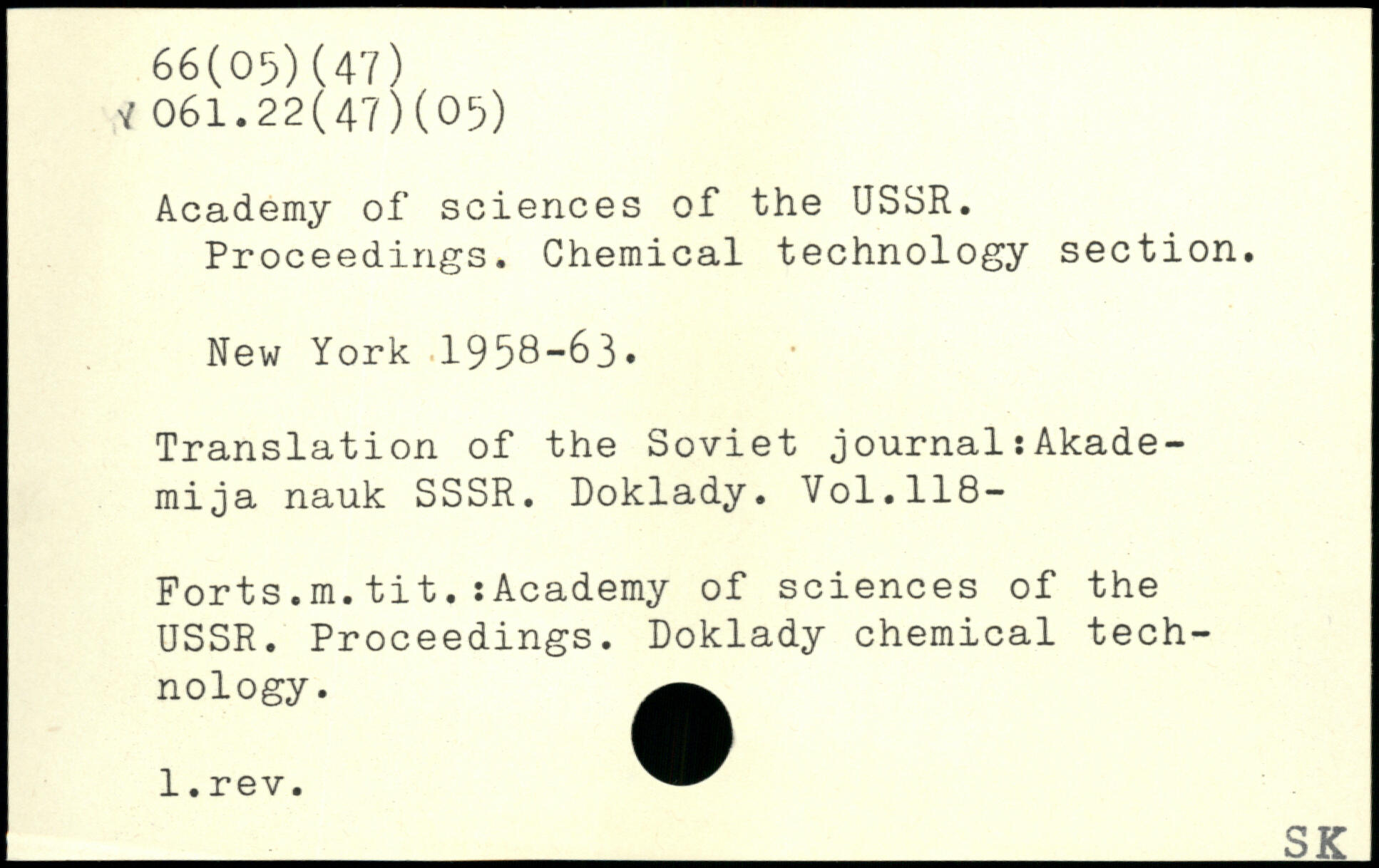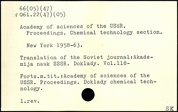 Academy of sciences of the USSR. Proceedings. Chemical technology section.