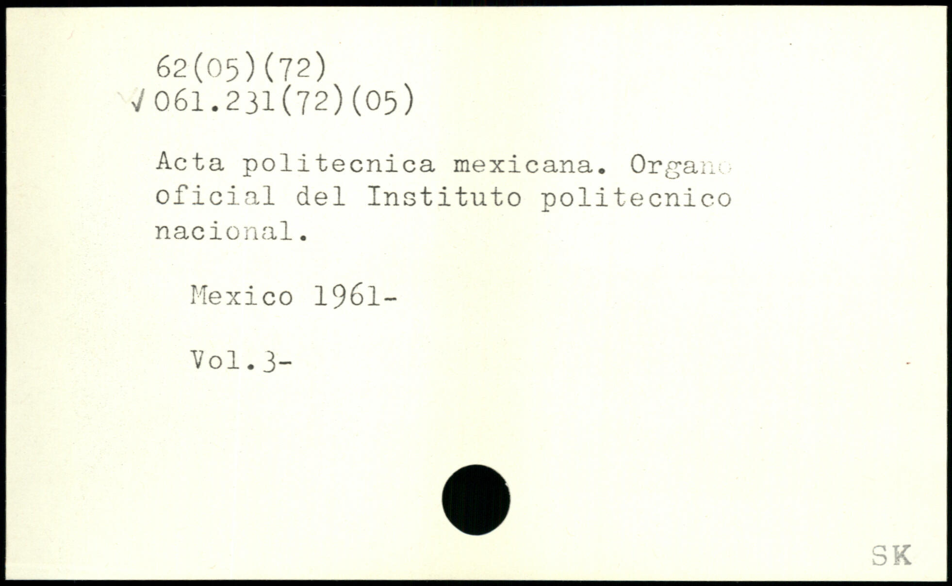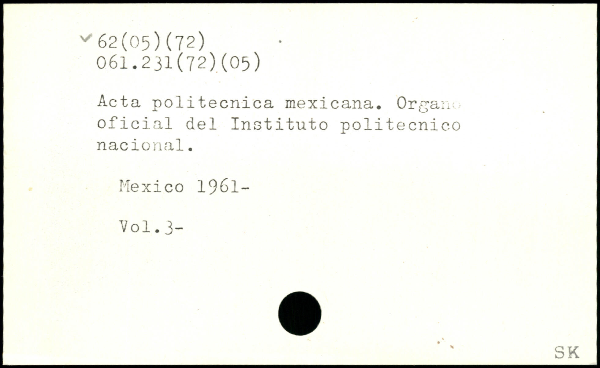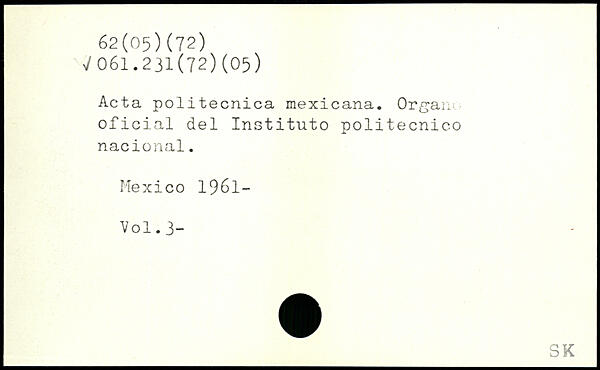 Acta politecnica mexicana. Organe oficial del Instituto politecnico nacional. Mexico 1961-