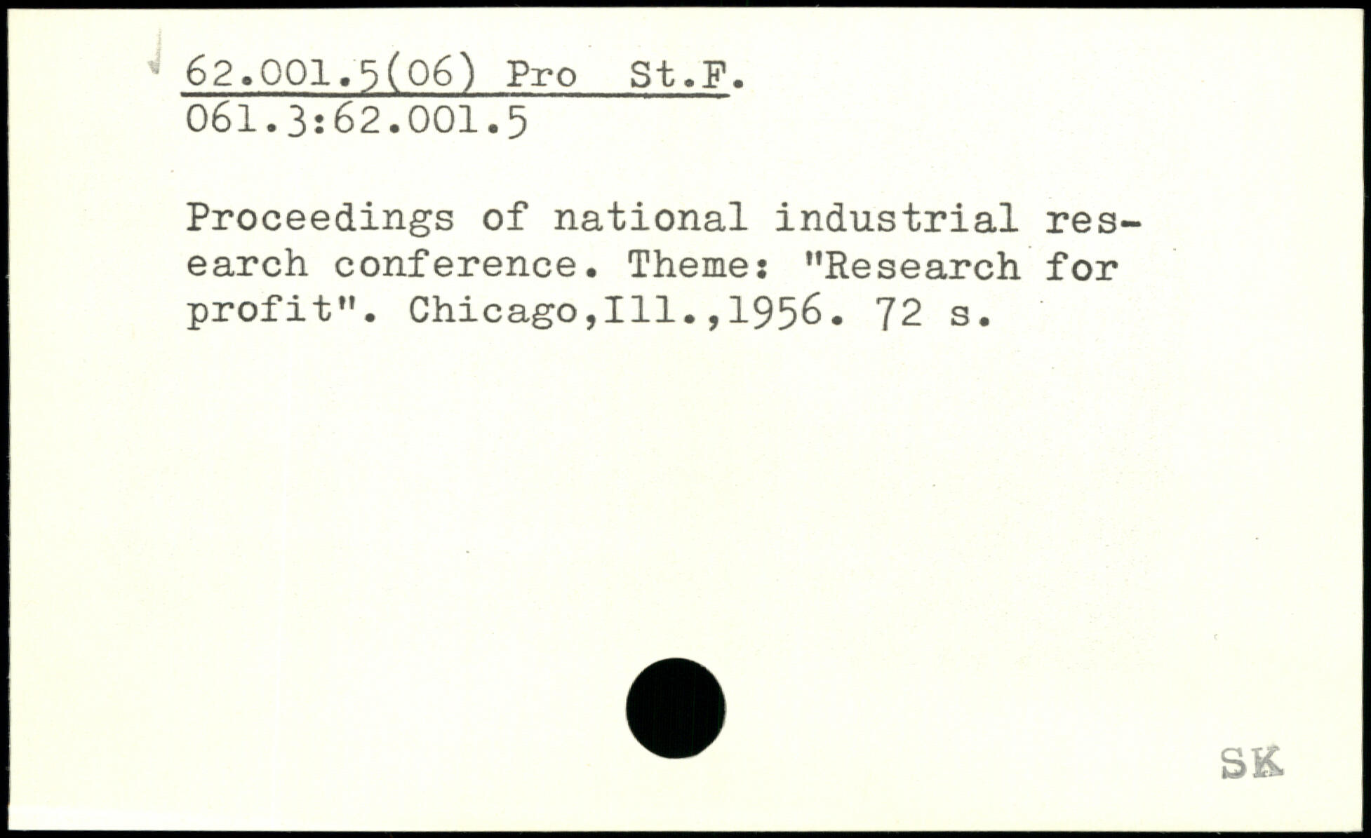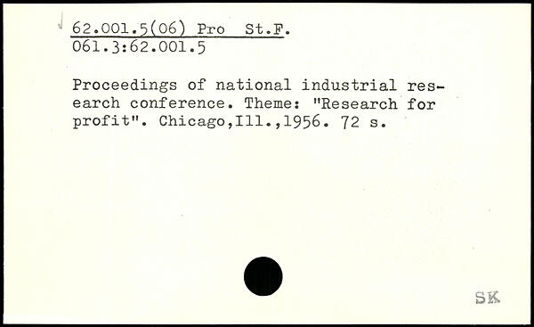 Proceedings of national industrial research conference. Theme: "Research for profit". Chicago,111.,1956.