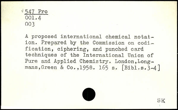 A proposed international chemical notation. Prepared by the Commission on codification, ciphering, and punched card techniques of the International Union of