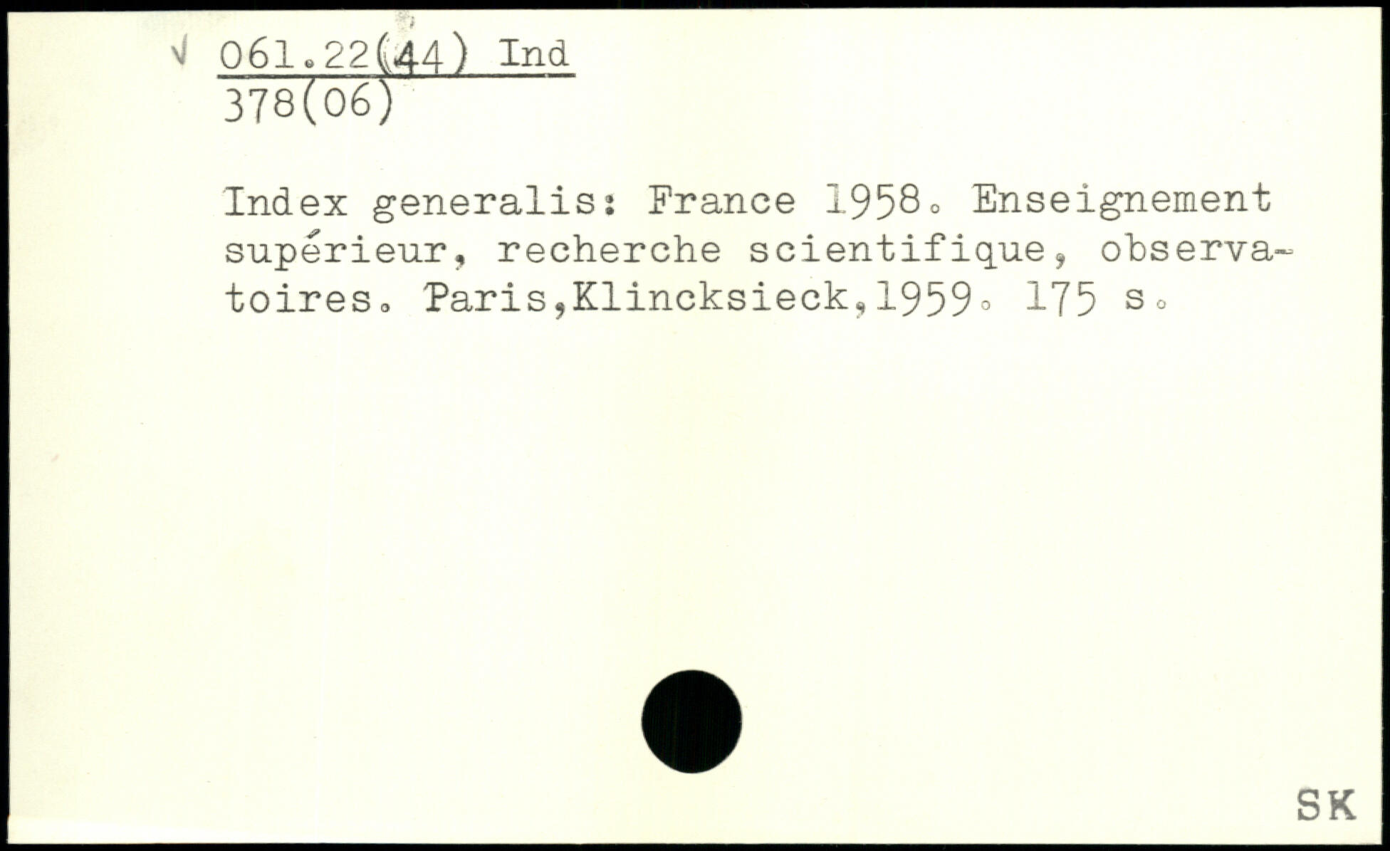 Index generalis: France 1958. Enseignement supérieur, recherche scientifique, observa-toiresc