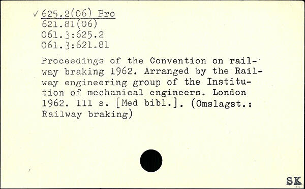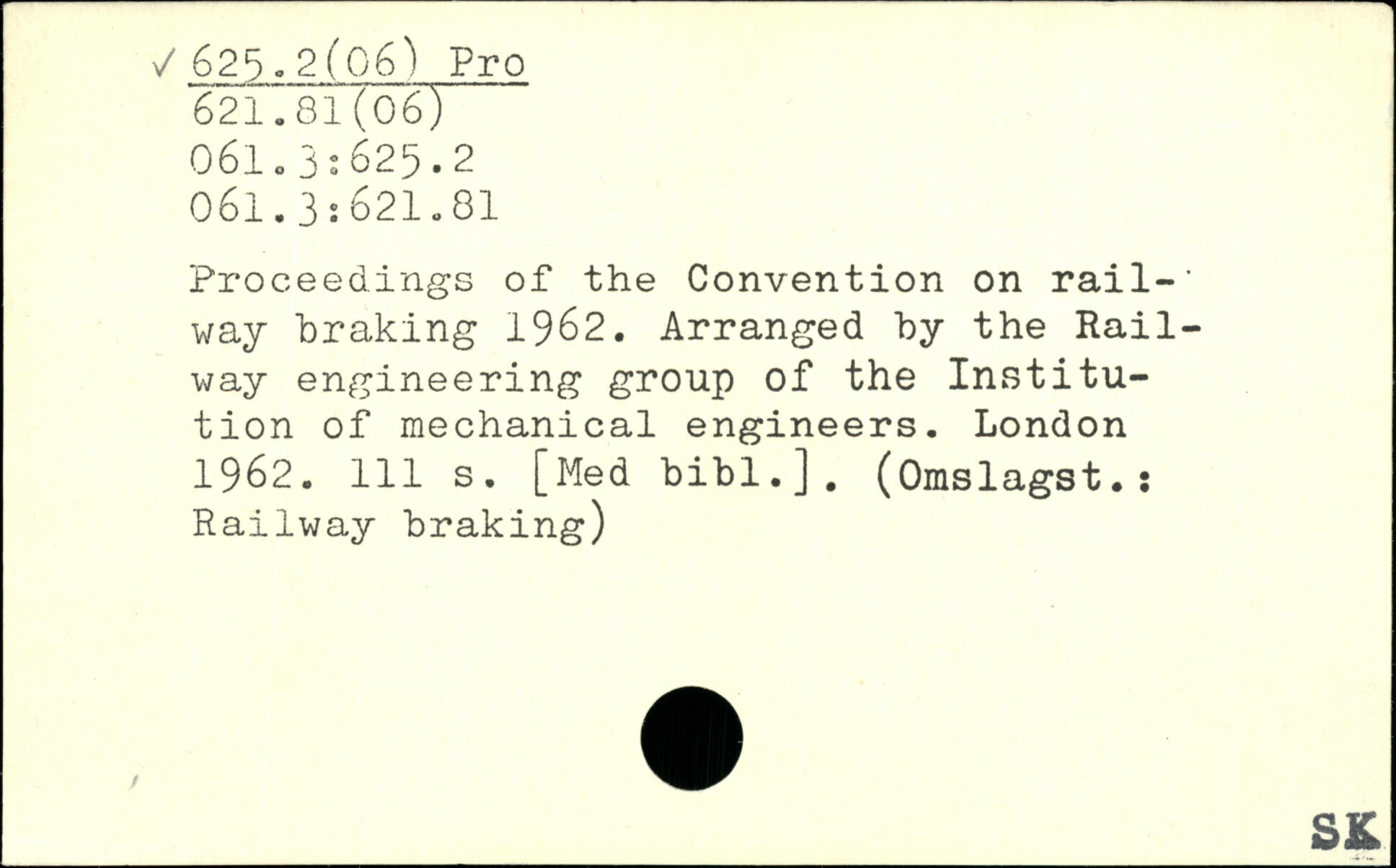 Proceedings of the Convention on rail-' way braking 1962. Arranged by the Railway engineering group of the Institution of mechanical engineers.