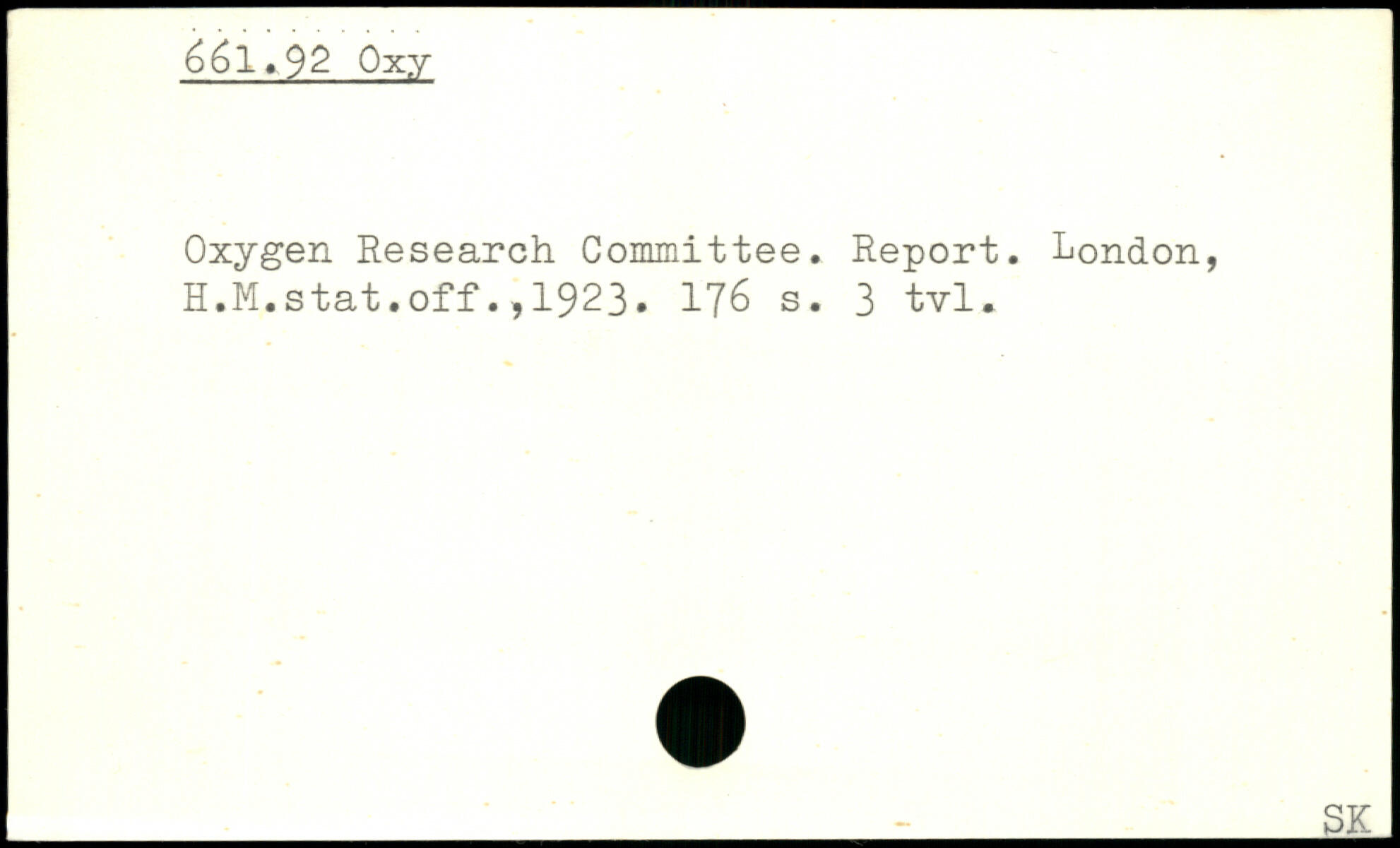 Oxygen Research Committee. Report. London, H.M.stat.off.,1923.