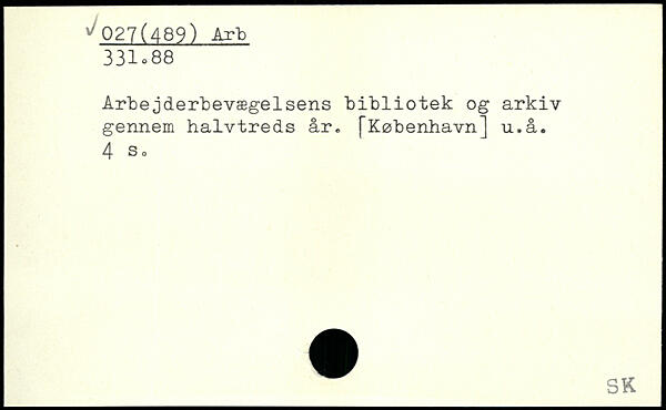 Arbejderbevægelsens bibliotek og arkiv gennem halvtreds år.