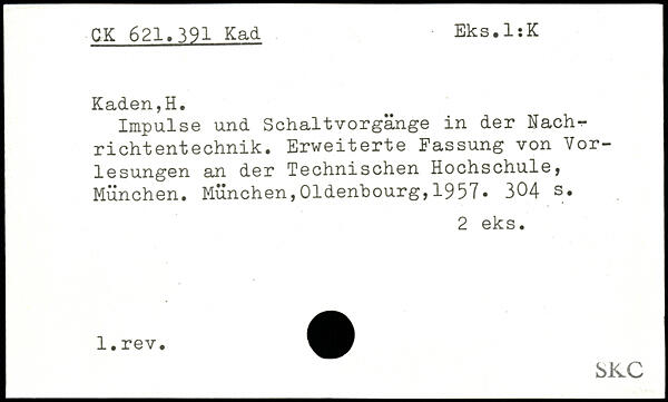 Impulse und Schaltvorgänge in der Nachrichtentechnik. Erweiterte Fassung von Vorlesungen an der Technischen Hochschule, München.