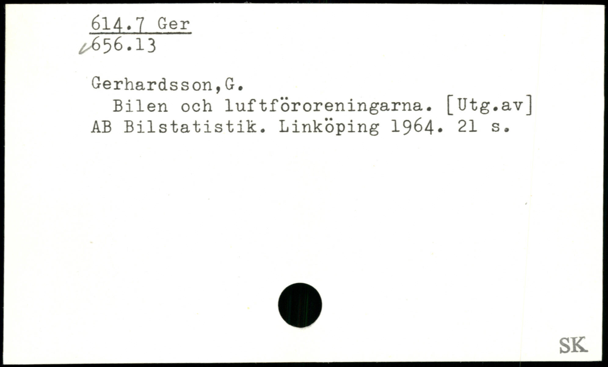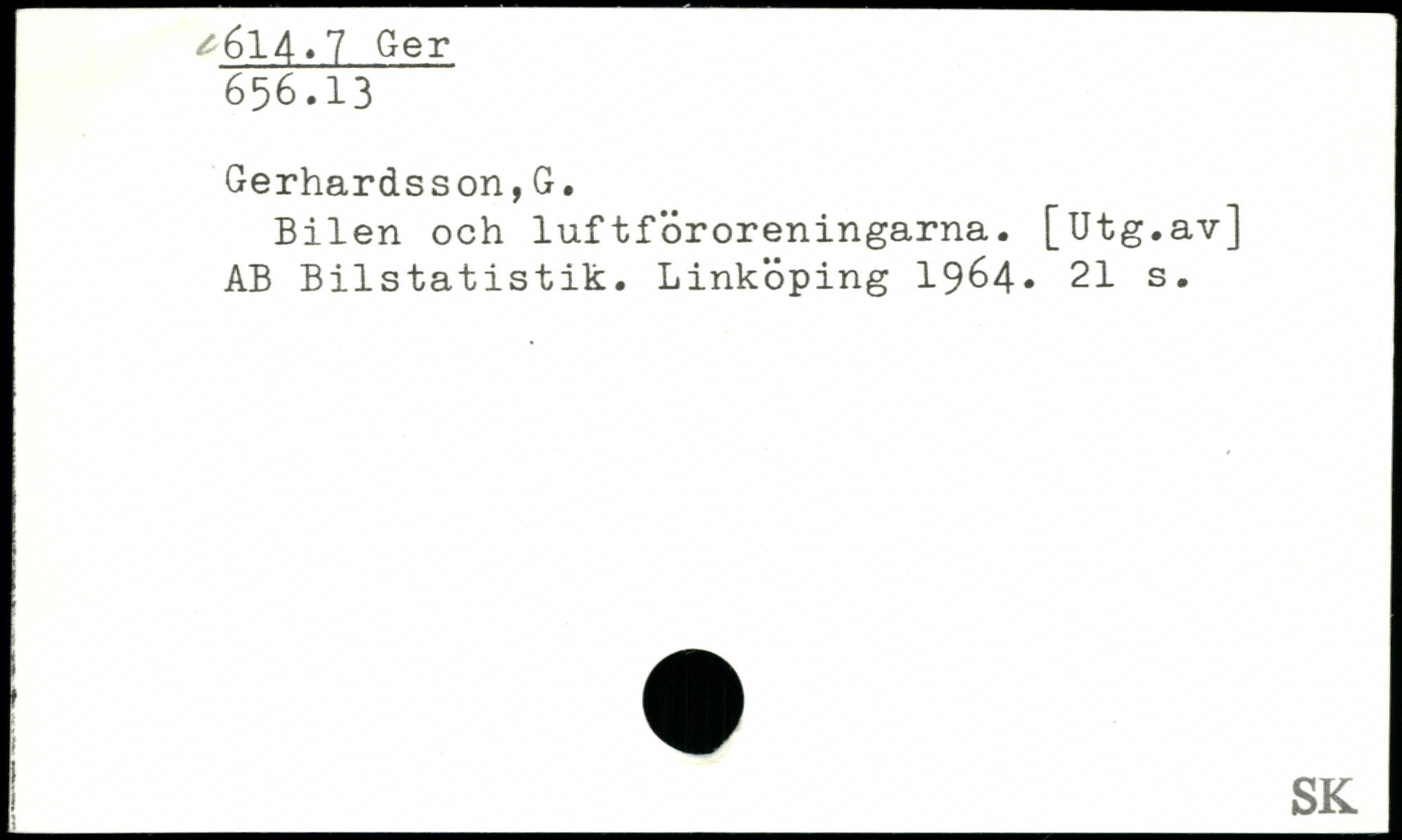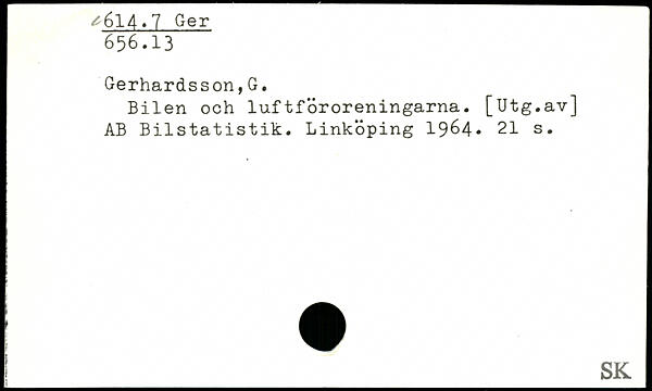 Bilen och luftföroreningarna. [Utg.av] AB Bilstatistik. Linköping 1964.