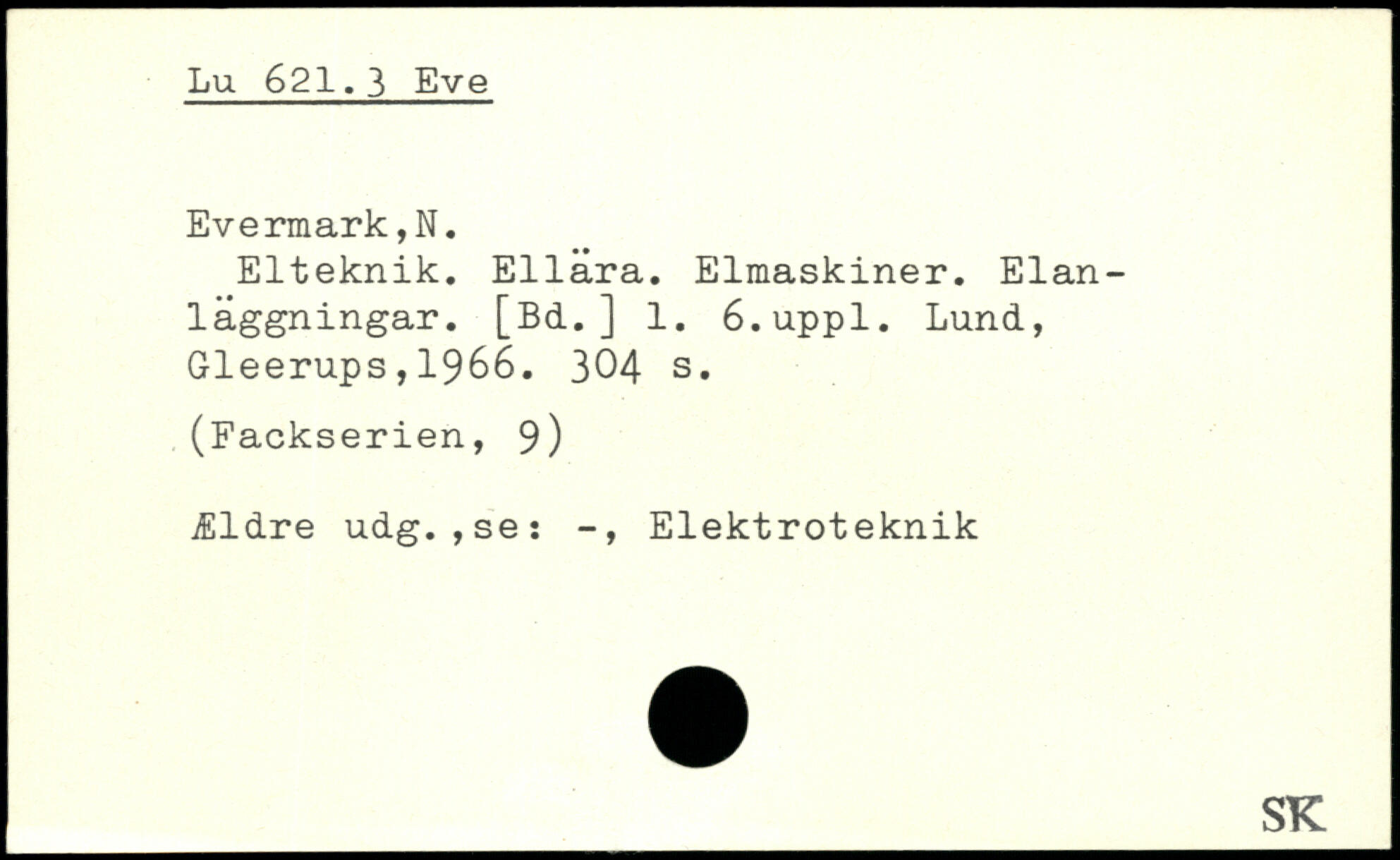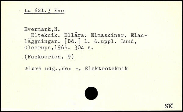 Elteknik. Ellära. Elmaskiner. Elanläggningar. [BcL. ] 1.