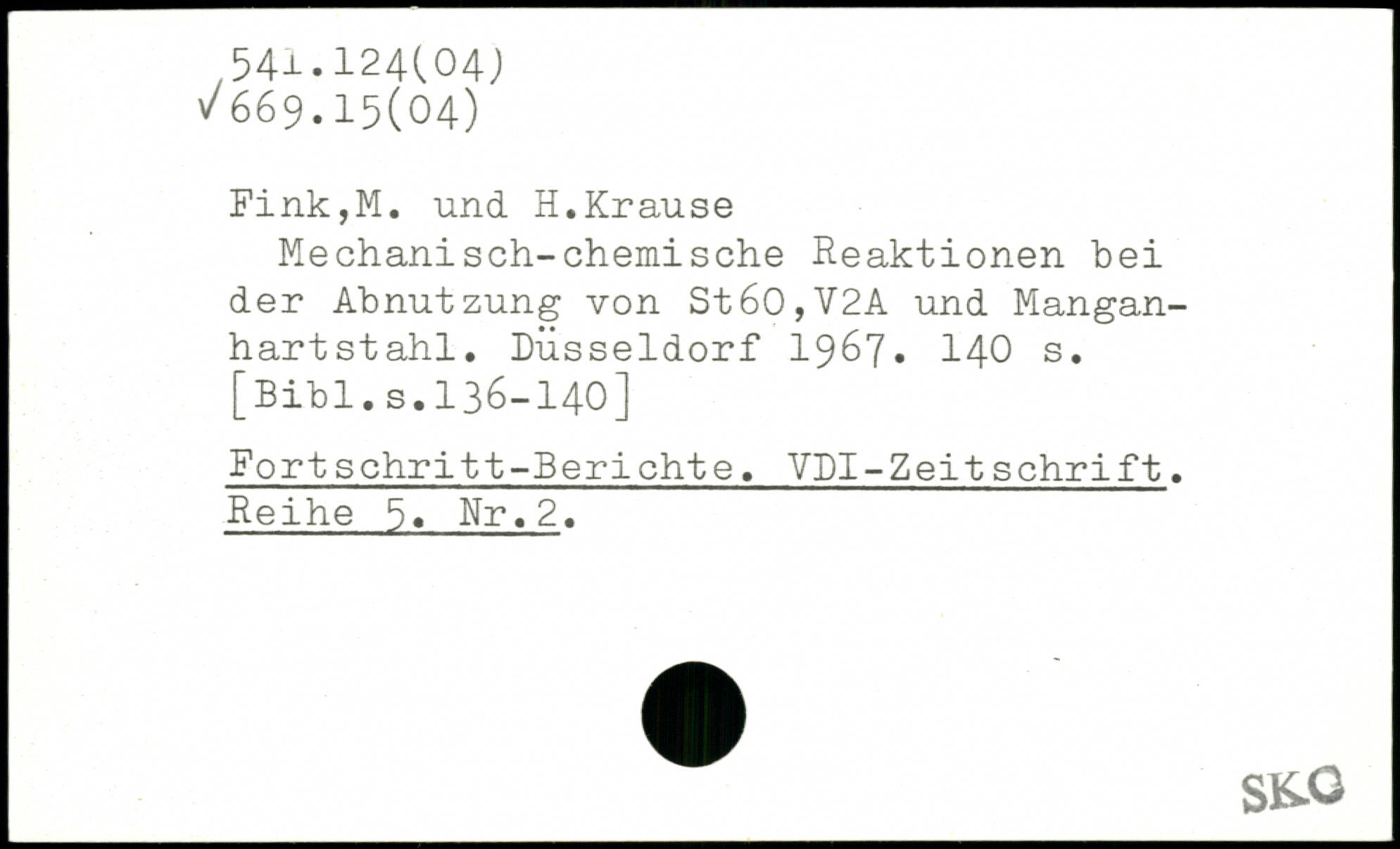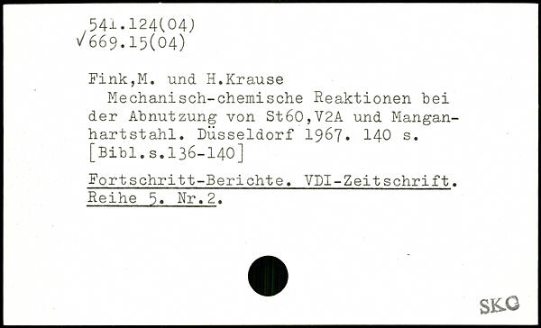 Mechanisch-chemische Reaktionen bei der Abnutzung von St60,V2A und Mangan-hartstahl. Düsseldorf 1967.