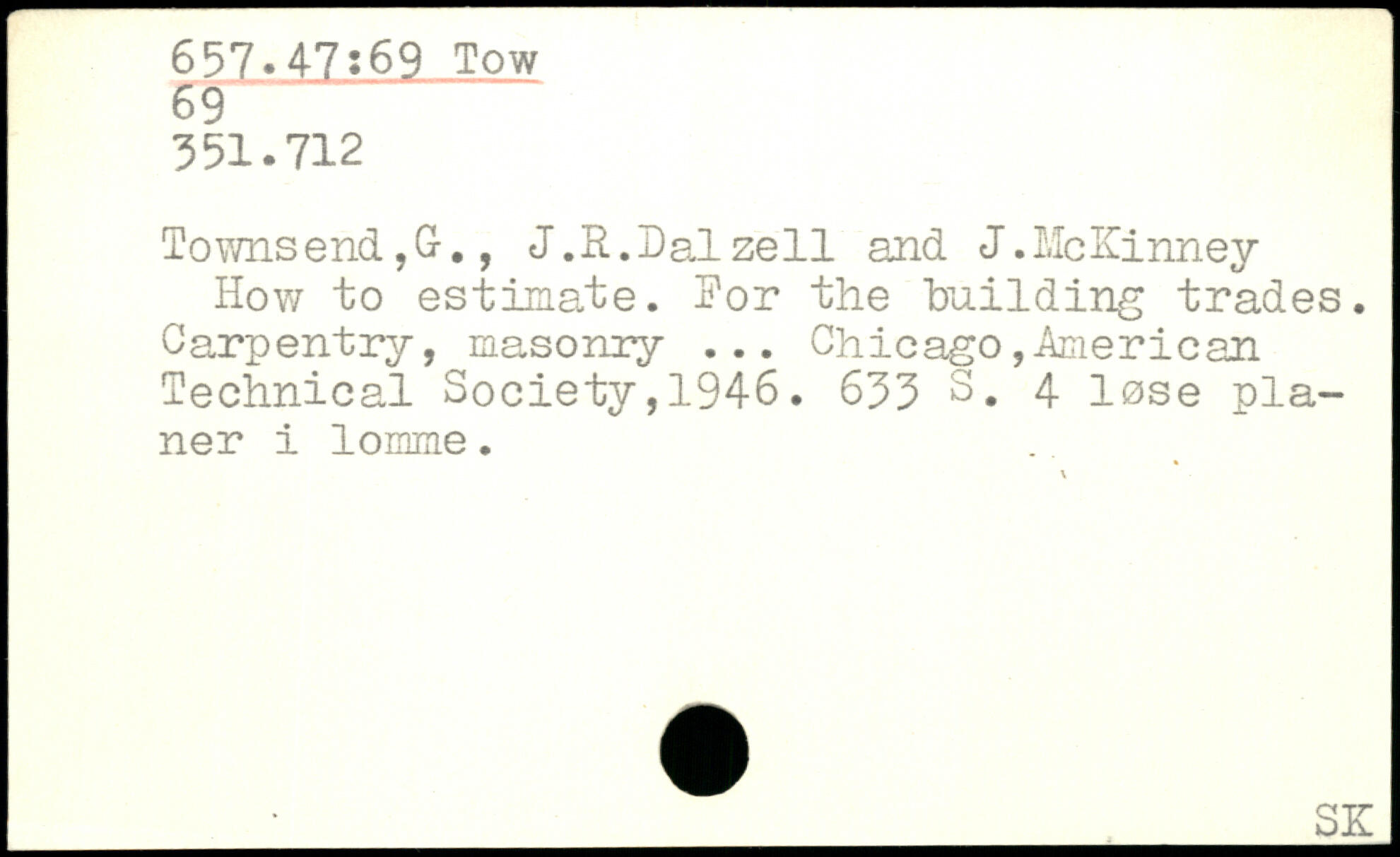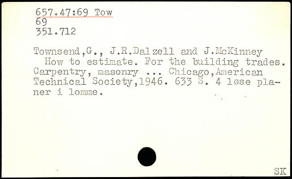 Townsend,G., J.R.Dalzell and J.McKinney How to estimate. Ror the building trades. Carpentry, masonry ...