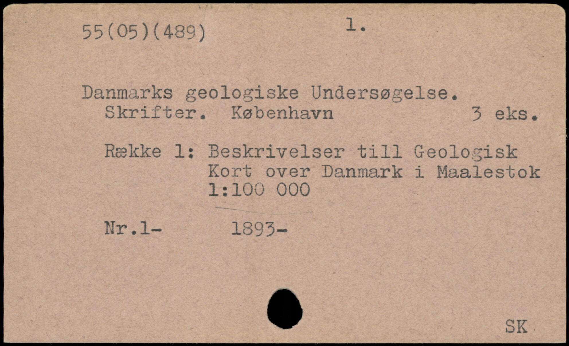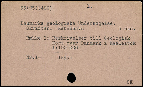 Danmarks geologiske Undersøgelse. Skrifter. København 3 eks. Række 1: Beskrivelser till Geologisk Kort over Danmark i Maalestok 1:100 000 Nr.l- 1393-