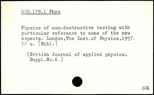 Physics of non-destructive testing with particular reference to some of the new aspects. London,The Inst.of Physics,1957.