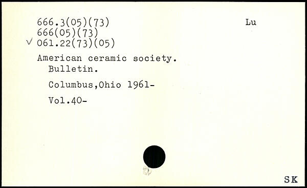 American ceramic society. Bulletin. Columbus,Ohio 1961-V0I.4O-