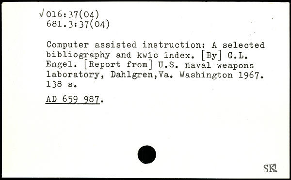 Computer assisted instruction: A selected bibliography and kwic index. [By] G.L. Engel. [Report from] U.S. naval weapons laboratory, Dahlgren,Va.
