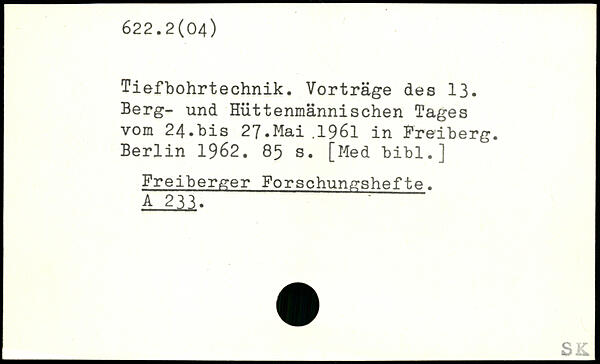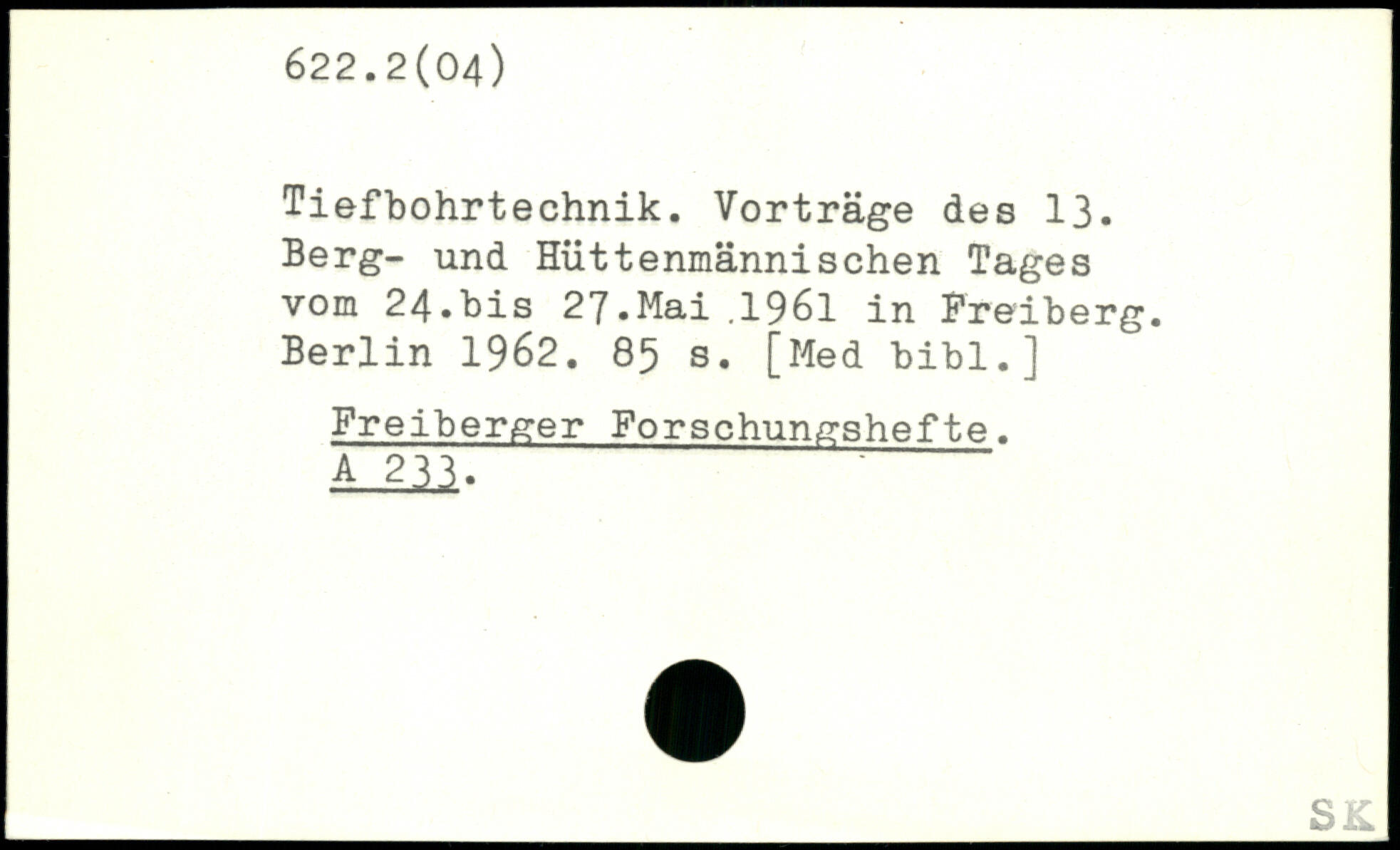 Tiefbohrtechnik. Vorträge des 13. Berg- und Hüttenmännischen Tages vom 24.bis 27.Mai ,1961 in Freiberg.