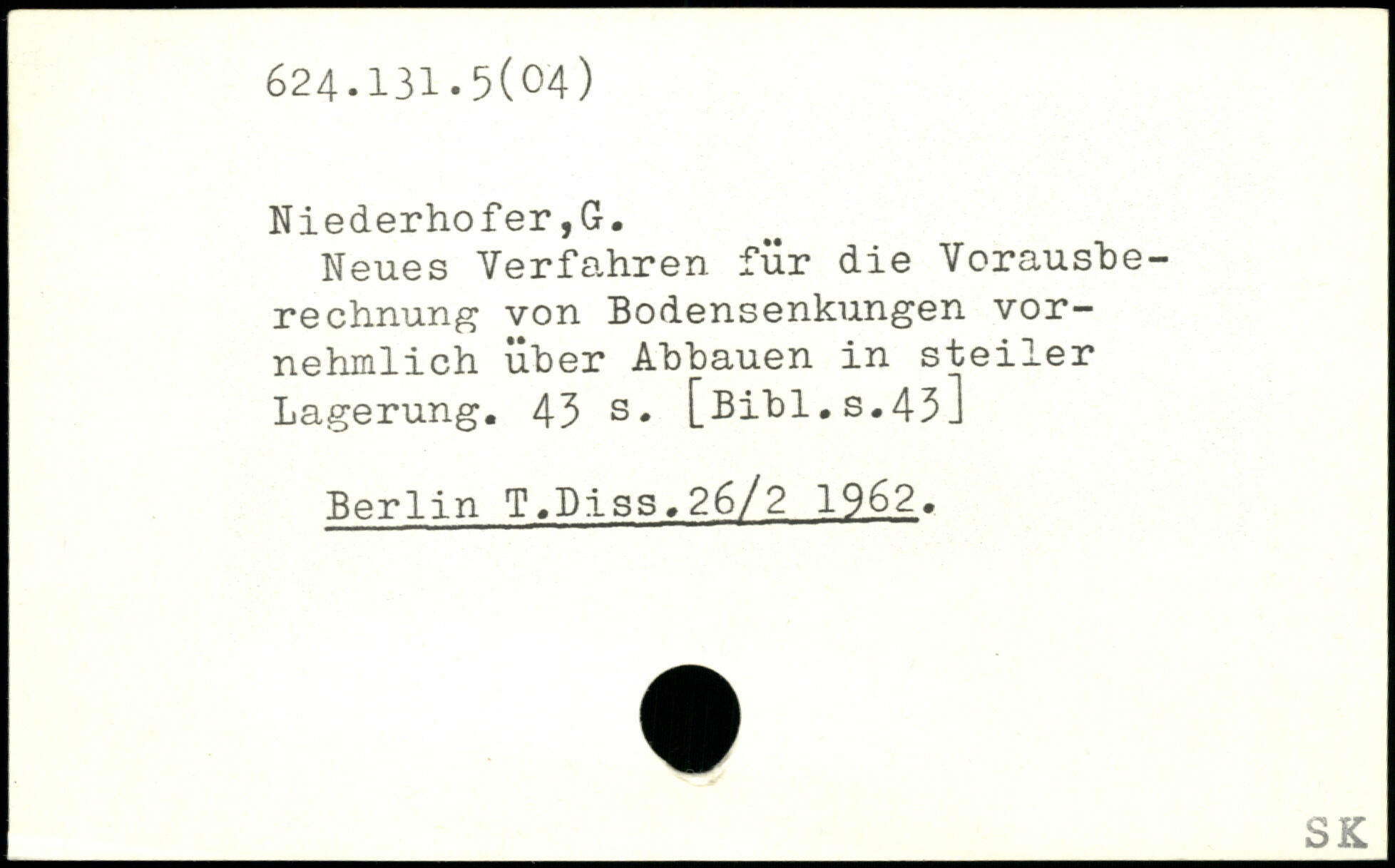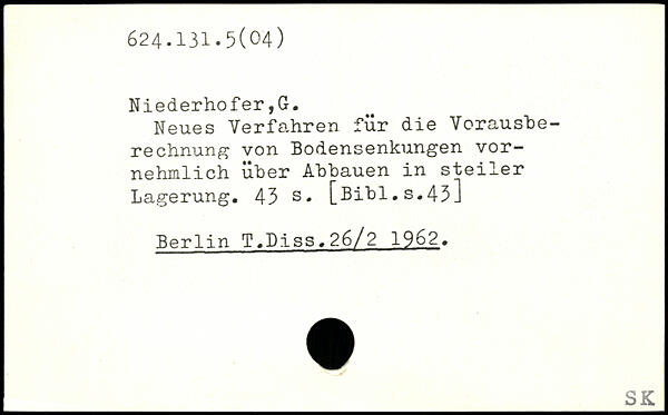 Neues Verfahren für die Vorausberechnung von Bodensenkungen vornehmlich über Abbauen in steiler Lagerung.