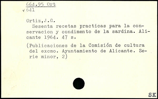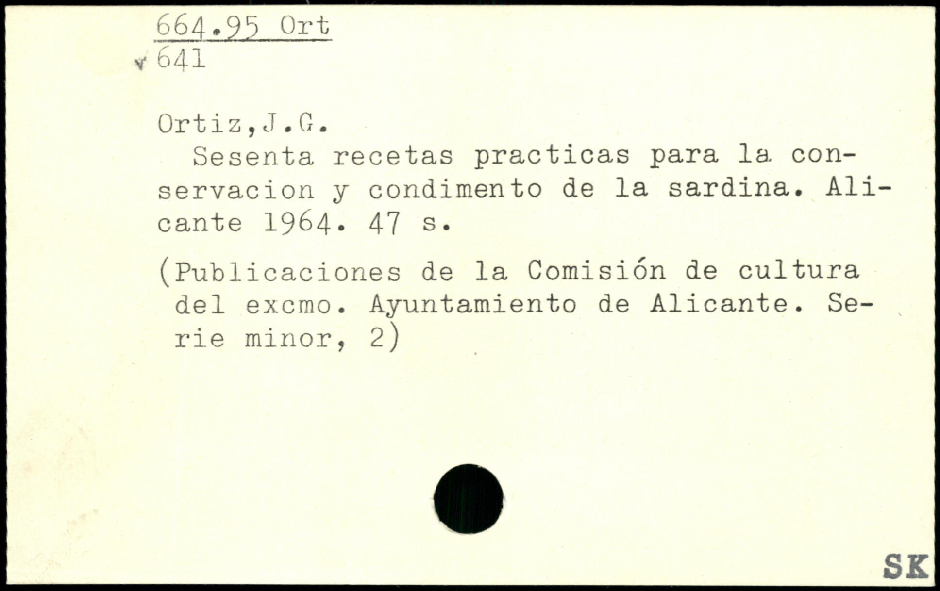 Sesenta recetas practicas para la. con-servacion y condimento de la sardina. Alicante 1964.