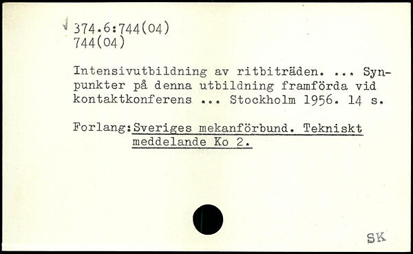 Intensivutbildning av ritbiträden. ... Synpunkter på denna utbildning framförda vid kontaktkonferens ...