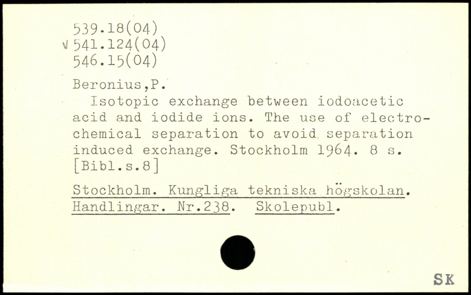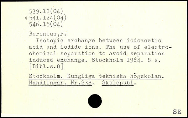 Isotopic exchange between iodoacetic acid and iodide ions. The use of electrochemical separation to avoid separation induced exchange.