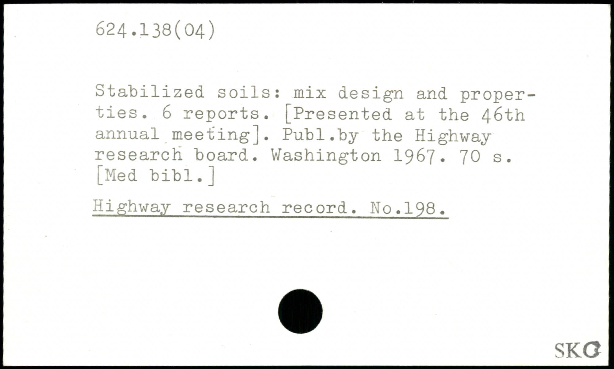 Stabilized soils: mix design and properties. 6 reports. [Presented at the 46th annual meeting].