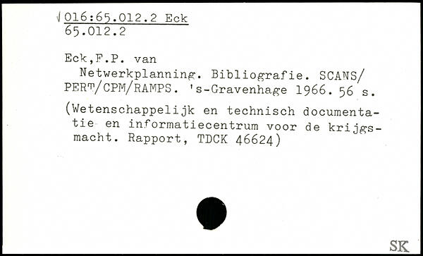 Netwerkplanning. Bibliografie. SCANS/ PER^/CPM/RAMPS. 's-Gravenhage 1966.