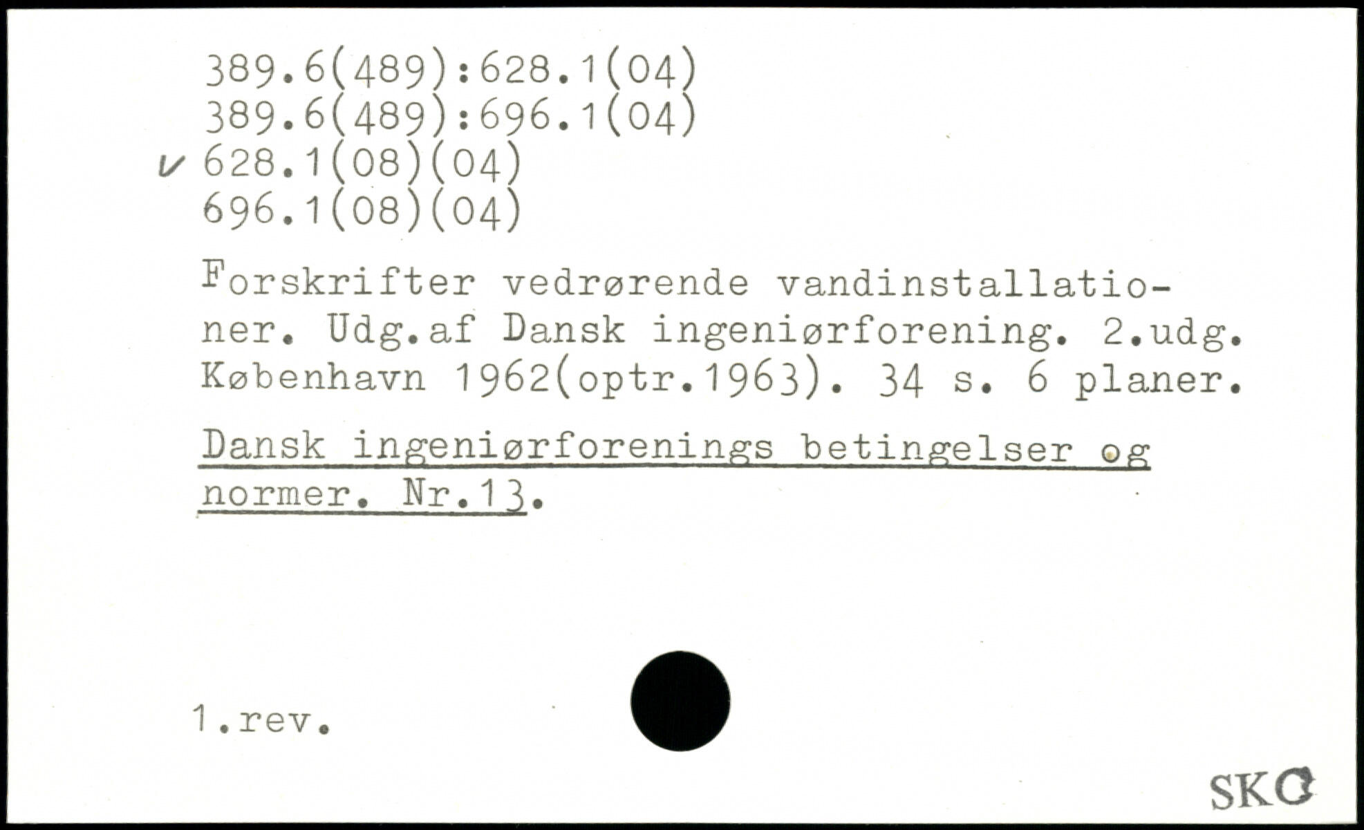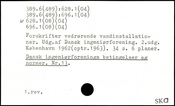 forskrifter vedrørende vandinstallatio-ner. Udg.af Dansk ingeniørforening.