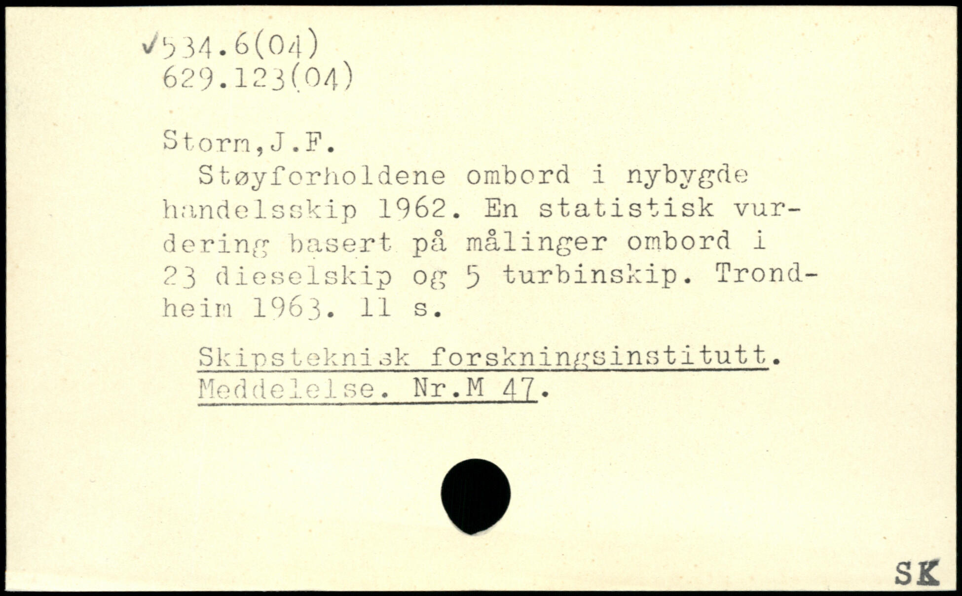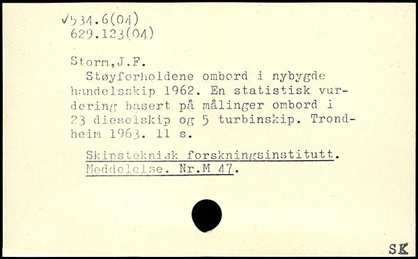 Støjforholdene ombord 1 nybygde handelsskip 1962. En statistisk vurdering basert på målinger ombord i 23 dieselskip og 5 turbinskip.