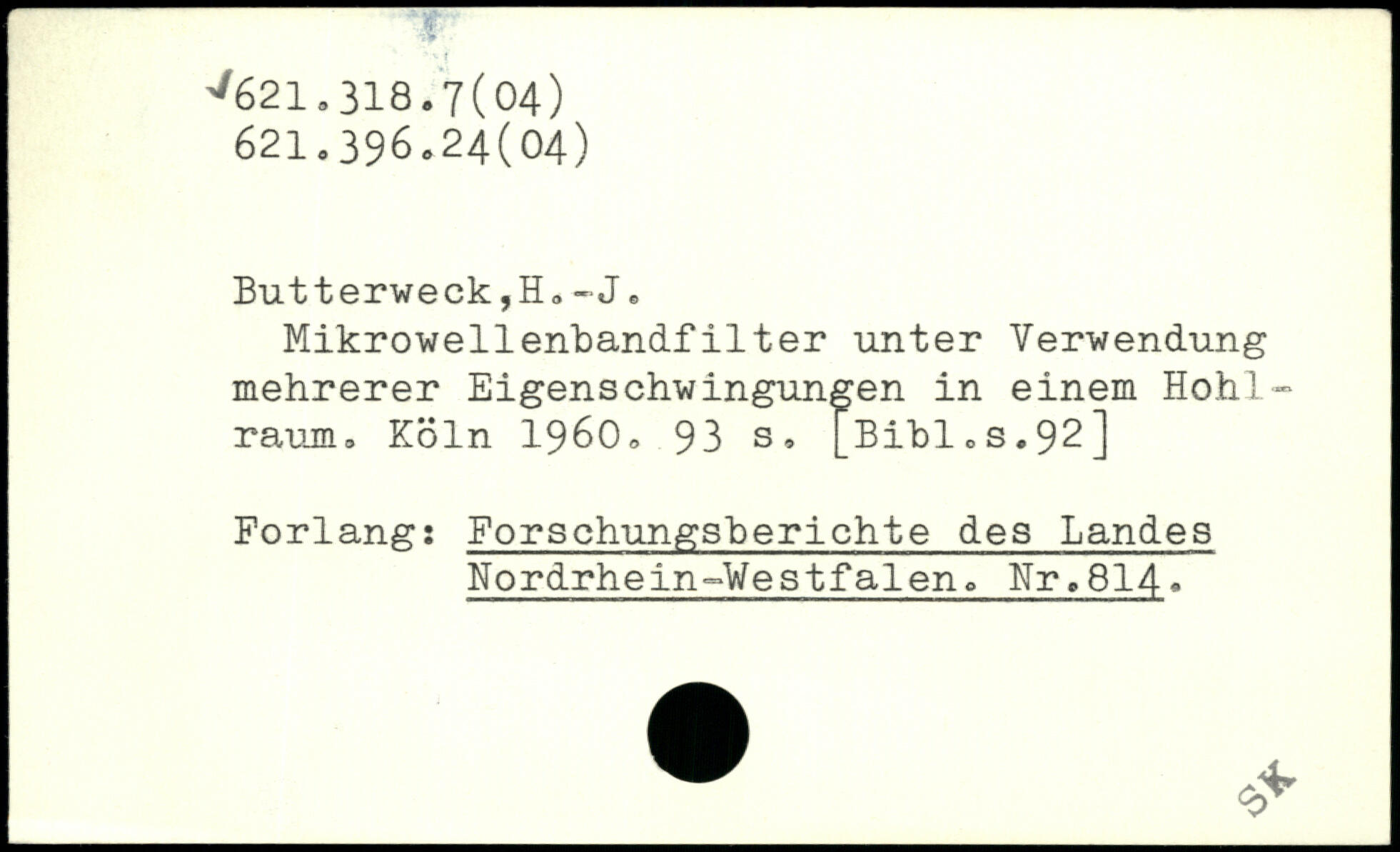 Mikrowellenbandfilter unter Verwendung mehrerer Eigenschwingungen in einem Hohl, raum.