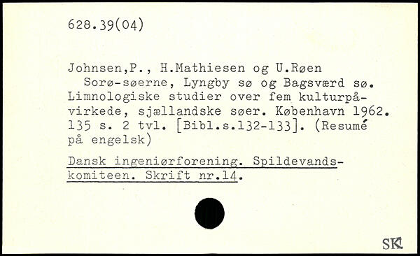 Sorø-søerne, Lyngby sø og Bagsværd sø, Limnologiske studier over fem kulturpåvirkede, sjællandske søer