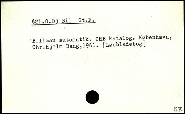Biliman automatik. CHB katalog. København, Chr.Hjelm Bang,1961. [LøsbladebogJ