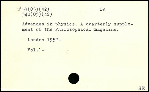 Advances in physics. A quarterly supplement of the Philosophical magazine.