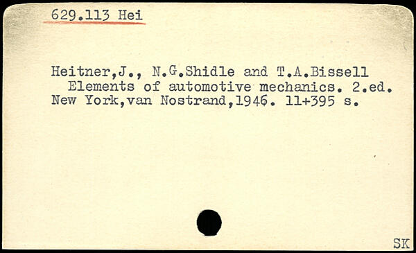 Heitner,J., N.G-.Shidle and T.A.Bissell Elements of automotive mechanics.