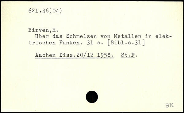 Uber das Schmelzen von Metallen in elektrischen Funken.
