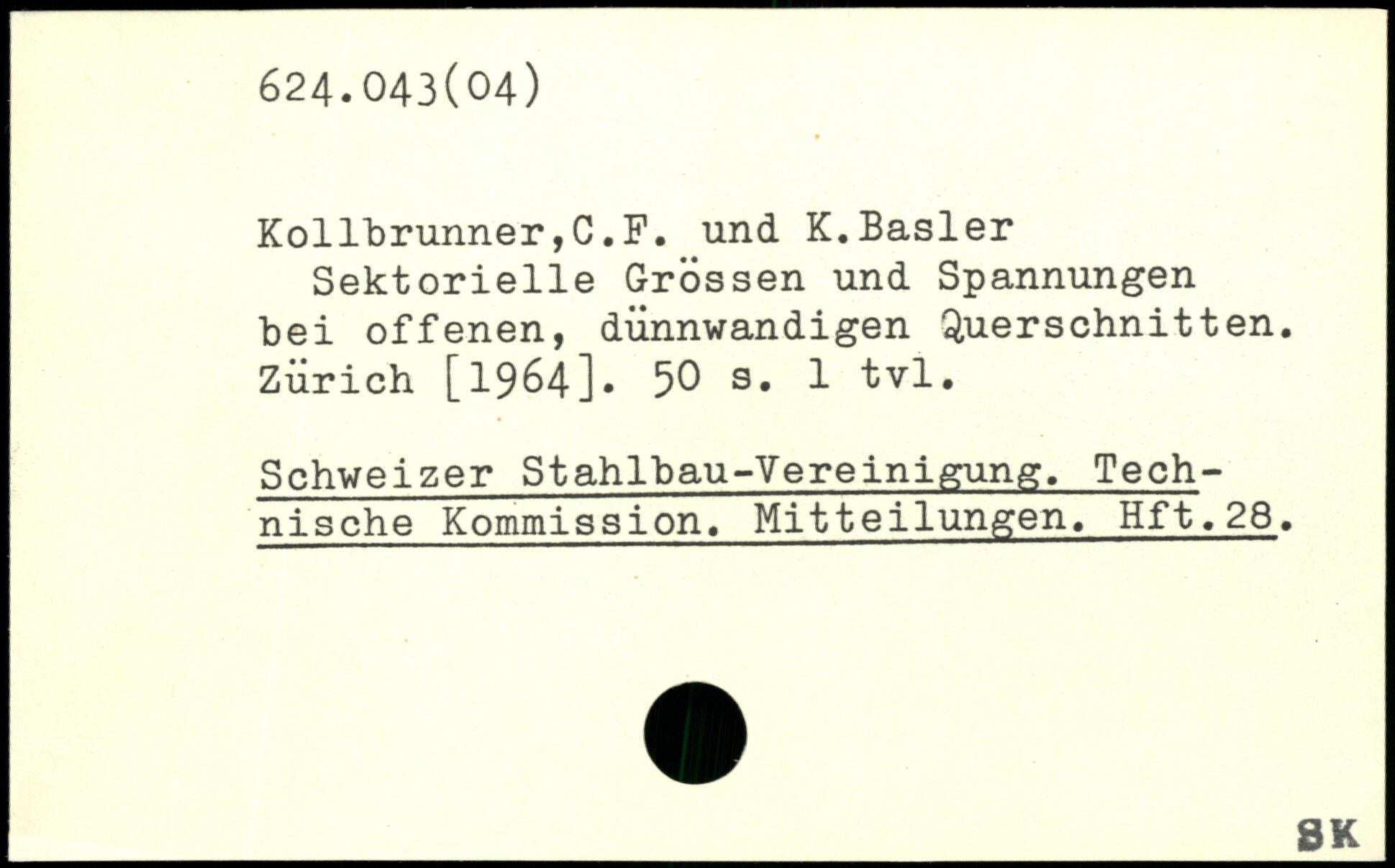 Sektorielle Grössen und Spannungen bei offenen, dünnwandigen Querschnitten. Zürich [1964].