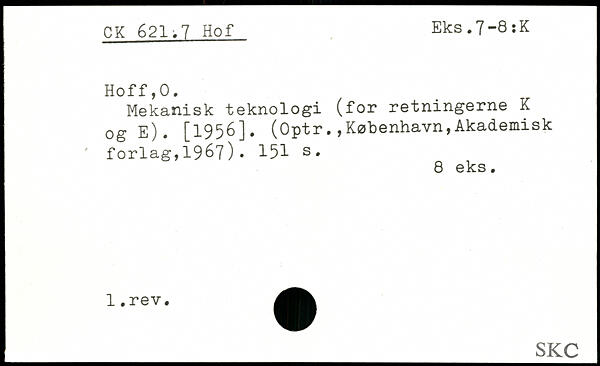 Mekanisk teknologi (for retningerne K 0g e), [1956]. (