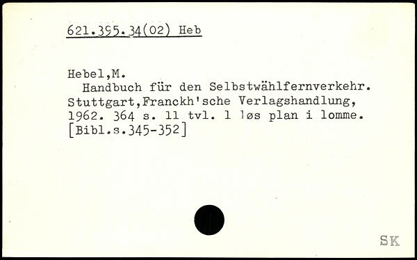 Handbuch für den Selbstwählfernverkehr. Stuttgart,Franckh’sehe Verlagshandlung, 1962.