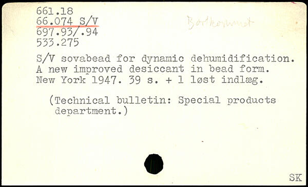 S/Y sovabead for dynamic dehumidification. A new improved desiccant in bead form. New York 194-7.