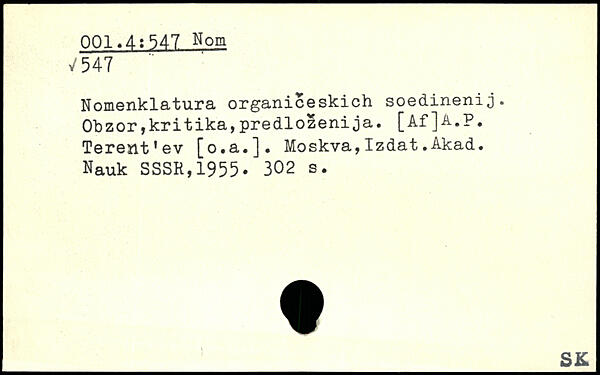 Nomenklatura organiceskich soedinenij. Obzor,kritika,predlozenija. [Af]A.P. Terent’ev [o.a.]. Moskva,Izdat.Akad. Nauk SSSH,1955.