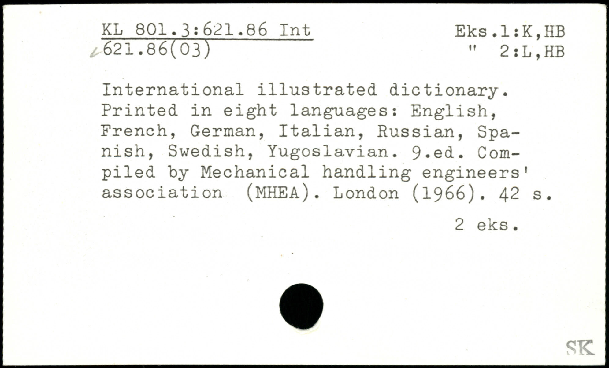 International illustrated dictionary. Printed in eight languages: English, French, German, Italian, Russian, Spanish, Swedish, Yugoslavian.