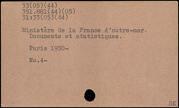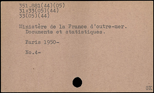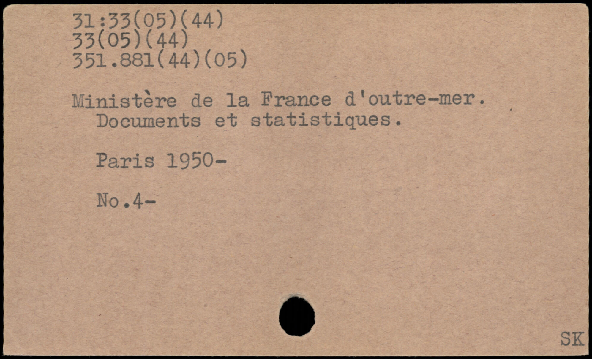 Ministère de la France d'outre-mer. Documents et statistiques.