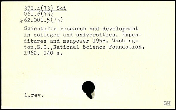 Scientific research and development in colleges and universities. Expenditures and manpower 1958, Washington, D.CNational Science Foundation, 1962.