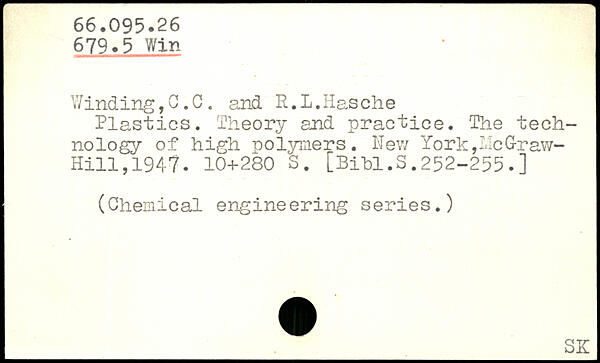 Winding,O.C. and R.l.Hasche Plastics. Theory and practice. The technology of high polymers.