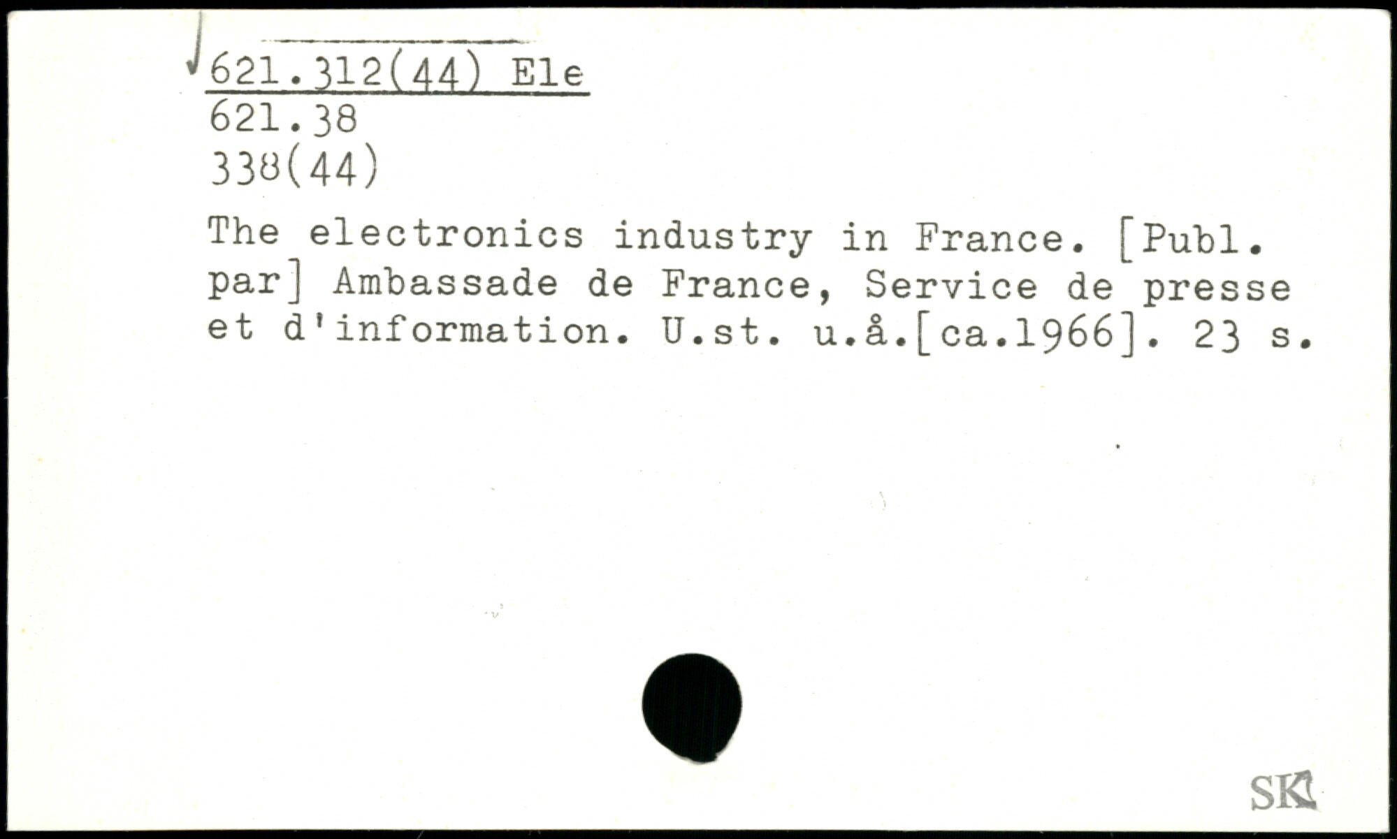The electronics industry in France. [Publ. par] Ambassade de France, Service de presse et d'information. U.st. u.â.[ca.1966].