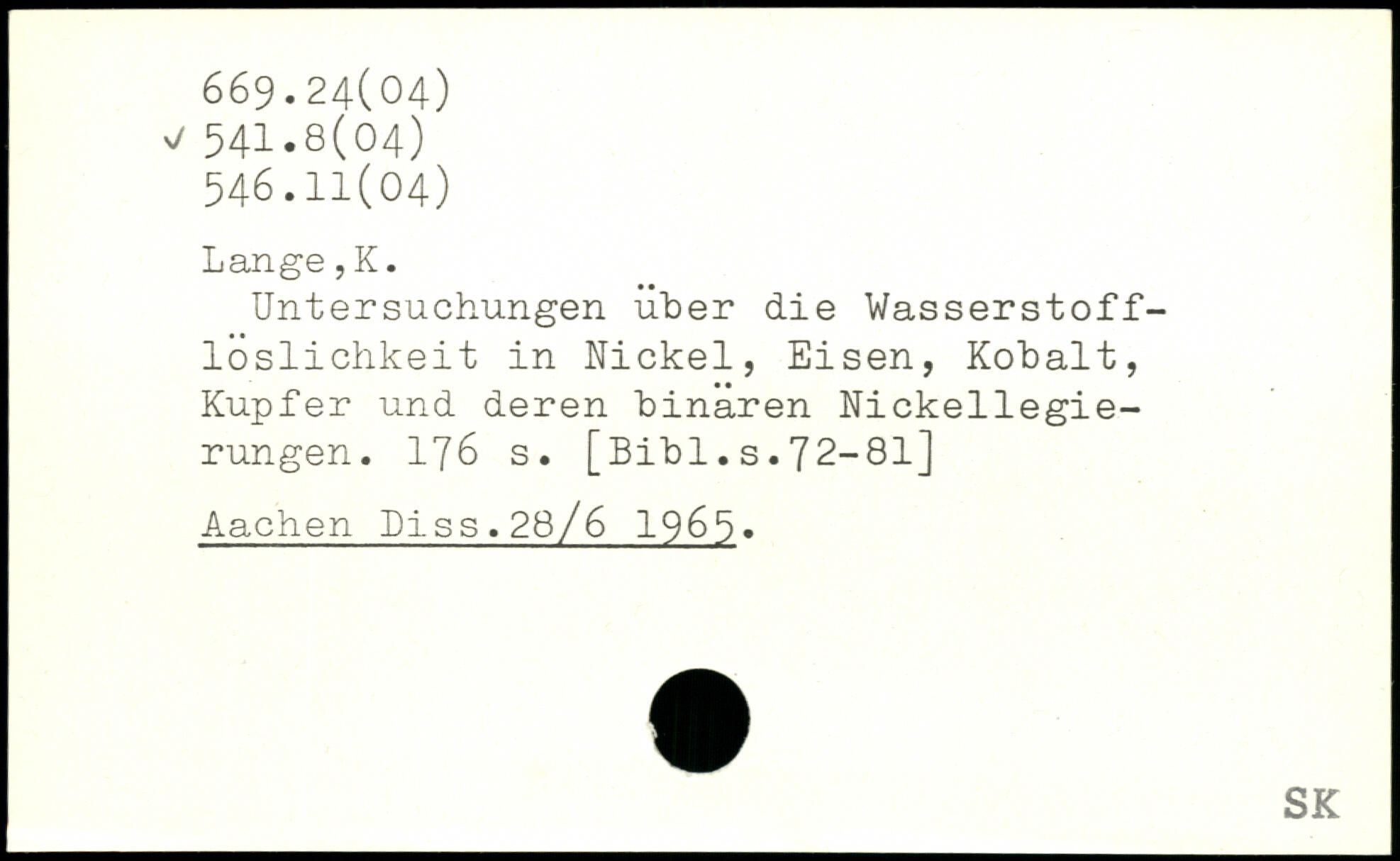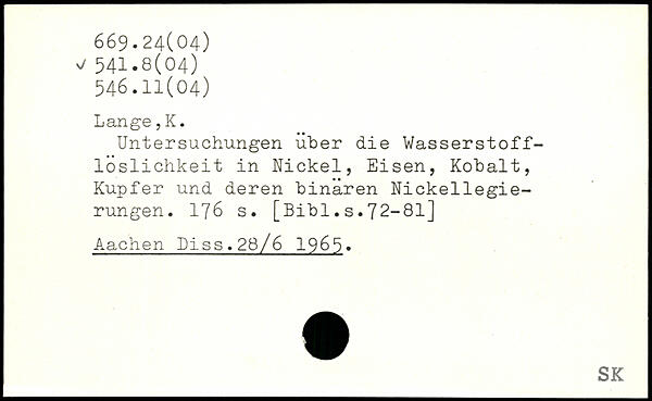 Untersuchungen über die Wasserstoff-loslichkeit in Nickel, Eisen, Kobalt, Kupfer und deren binaren Nickellegierungen.