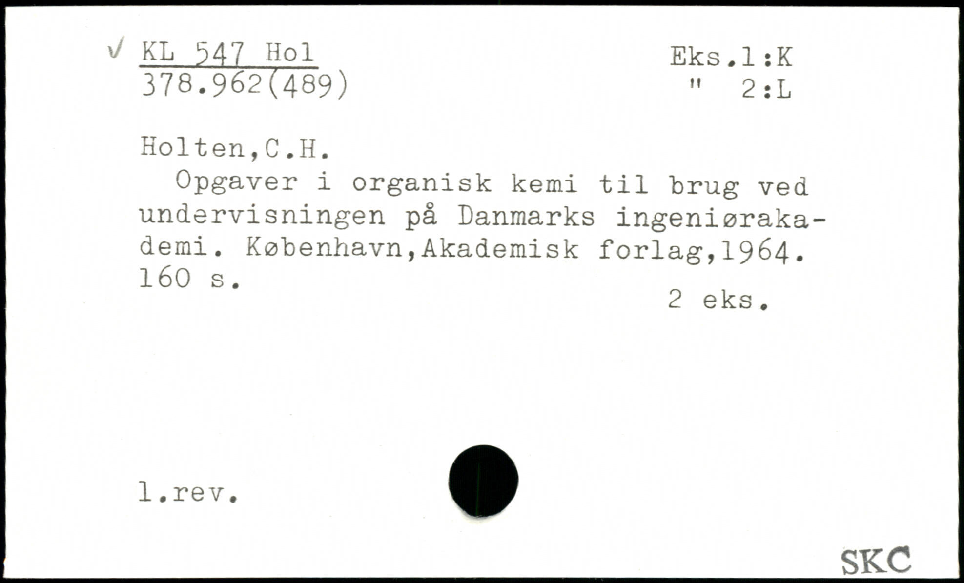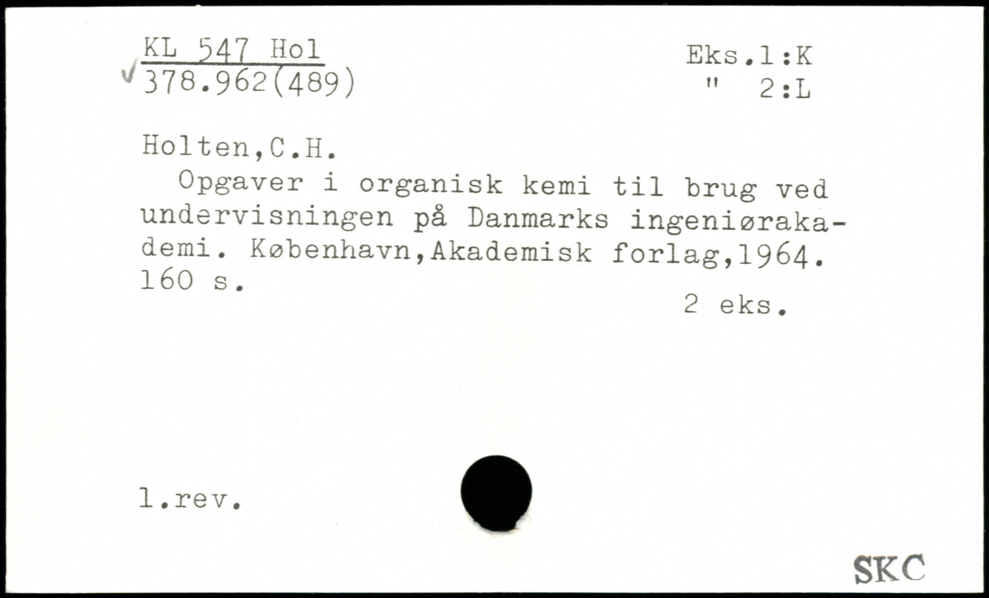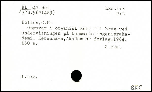 Opgaver i organisk kemi til brug ved undervisningen på Danmarks ingeniørakademi.