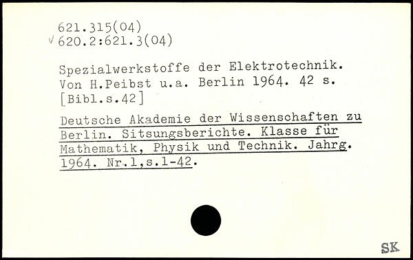 Spezialwerkstoffe der ElGktrotGchnik. Von H.Peibst u.a.